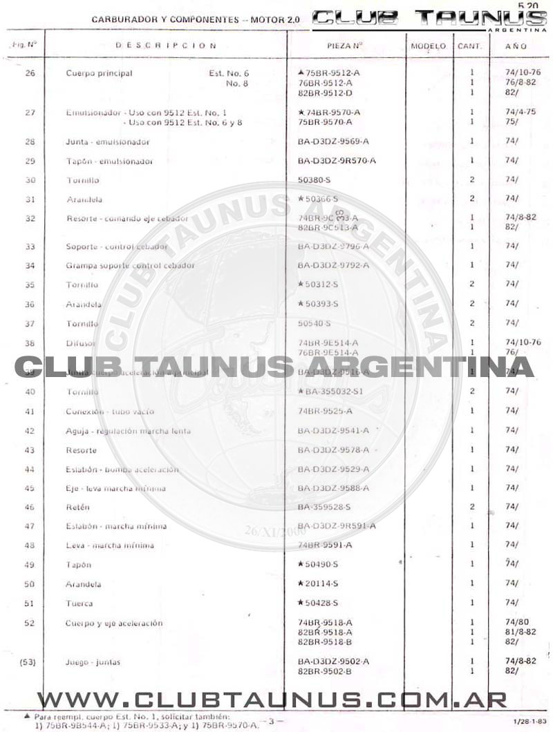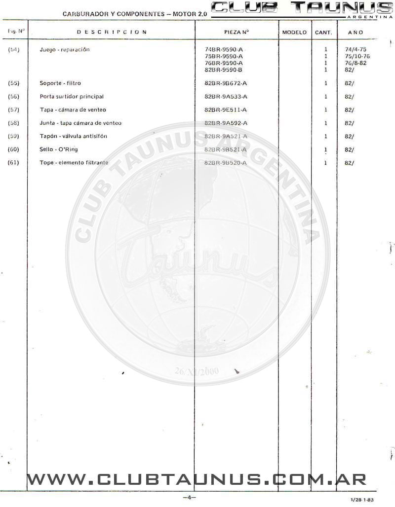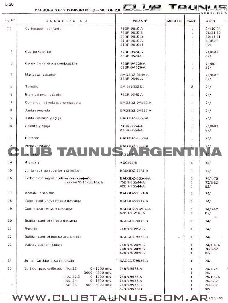 CARBURADOR Y COMPONENTES - MOTOR 2.0