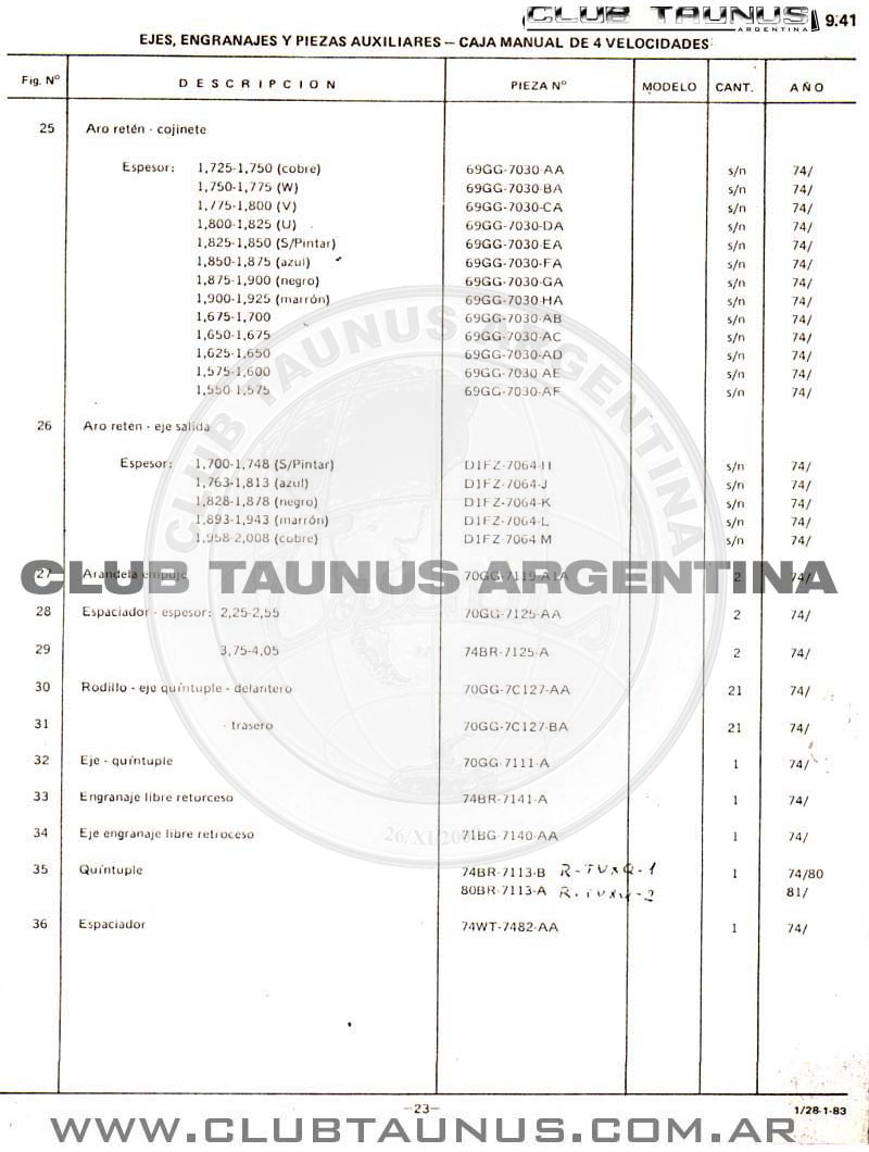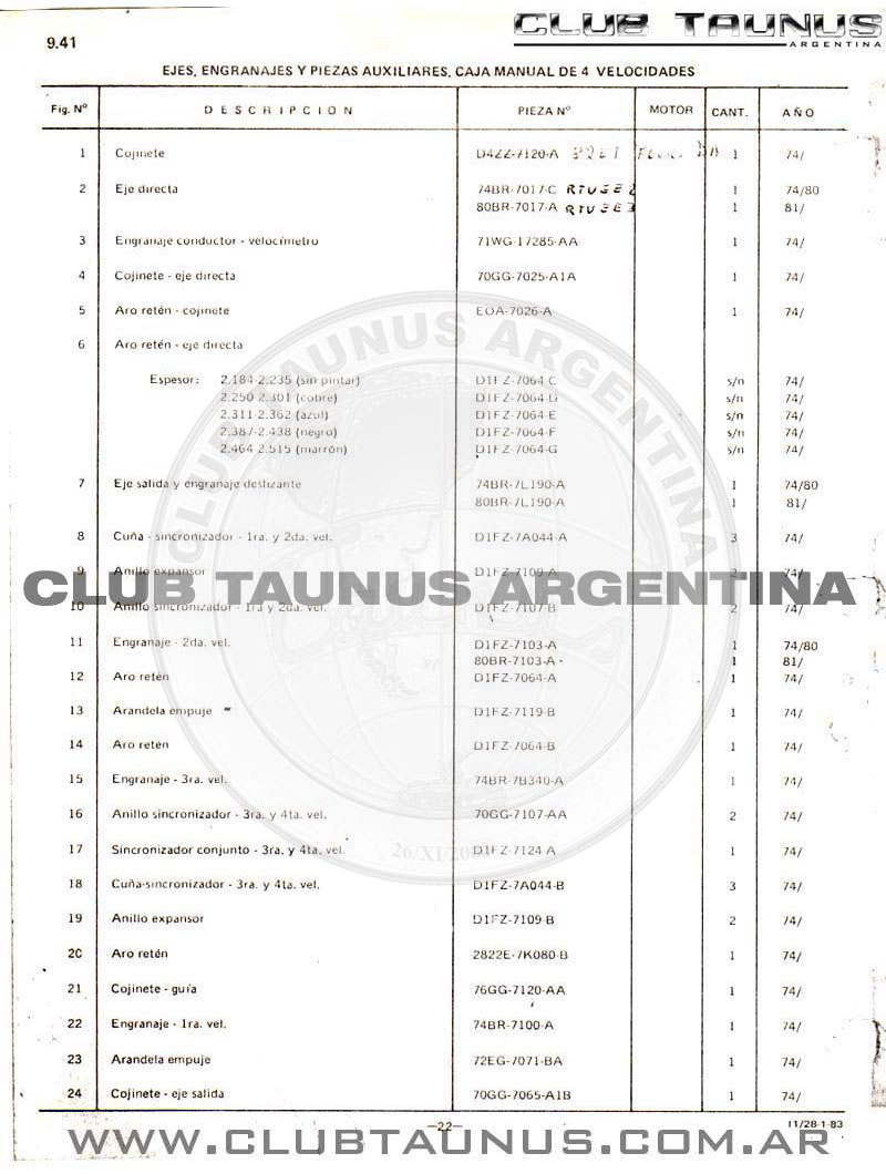 CAJA MANUAL DE 4 VELOCIDADES - EJES, ENGRANAJES Y PIEZAS AUXILIARES