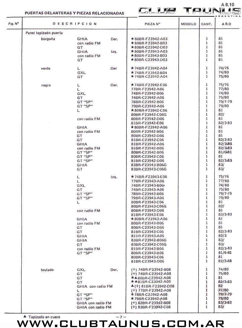 PUERTAS DELANTERAS Y PIEZAS RELACIONADAS