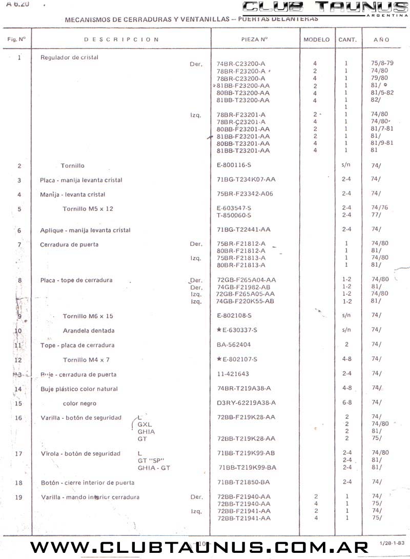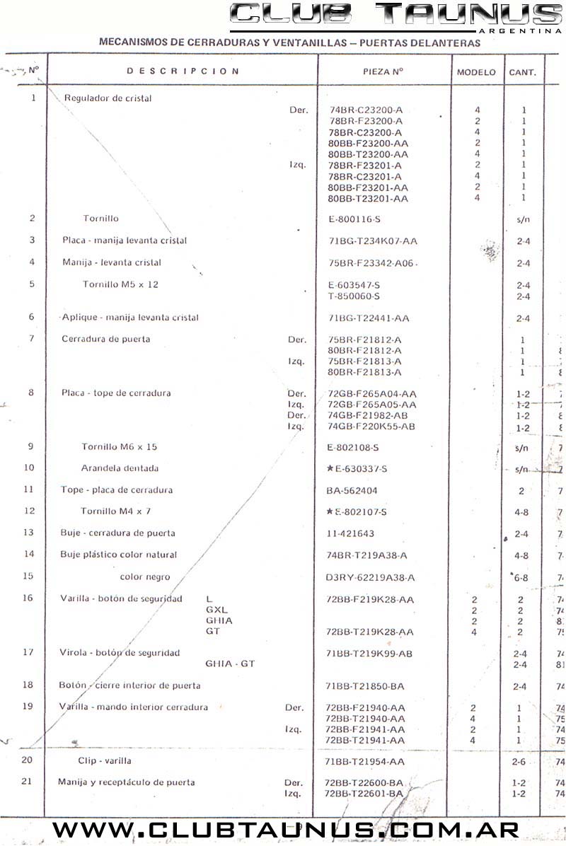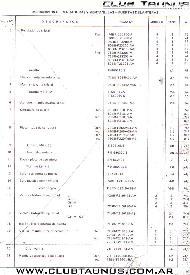 MECANISMOS DE CERRADURAS Y VENTANILLAS - PUERTAS DELANTERAS