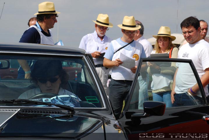 En cuanto a participaciones, hubo Taunus por todas partes, no solo por ser, junto a los Torino, el Club que mas autos llevó (48 el día domingo), sino también porque participaron en 3 disciplinas distintas, para empezar Mauricio (68) con su GT 1982 y navegado por Fernando (102), corrieron del desafío Ford–Chevrolet que era una prueba de regularidad. Por otra parte se organizo un concurso de estado en donde también tuvimos 3 representantes, Lucas (29) y su Taunus GT SP 1979, Miguel (42) con su L 1980 y Alejandro (127) con su L bitono 1977, en donde lamentablemente la organización y el reglamento dejaban muchos puntos poco claros. Por ultimo, Adrián (96) nos deleito con un manejo muy prolijo y preciso, de su GT 1981 en la habilidad conductiva.