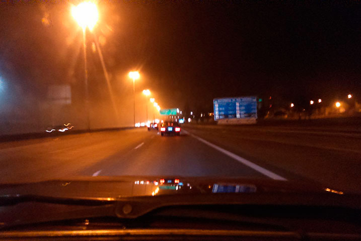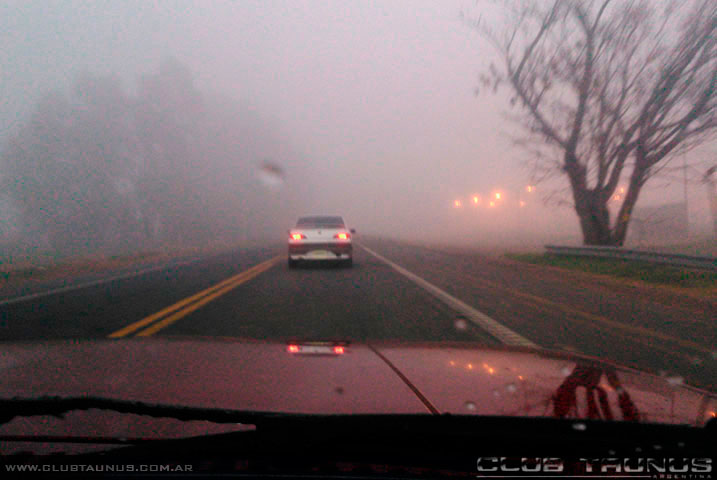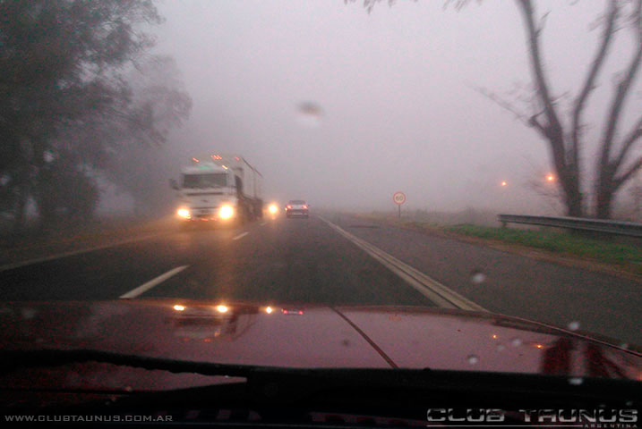 Por momentos los bancos de neblina apenas permitían ver el auto de adelante y la velocidad crucero bajo a 40 km/h. lo cuál no fue motivo para detener el pelotón formado por autos clásicos y contemporáneos.