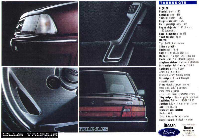 Las baguetas laterales aumentan de tamaño. Las llantas son de aleación ligera, utilizadas en nuestro país por el Ford Fiesta '95. El frente, se inclina hacia adelante (primera vez en la historia del Taunus). Se le añaden las luces frontales tipo Ford Sierra Ghia, y las de guiño son transparentes. El tablero y el interior así como los tapizados, son COMPLETAMENTE renovados, devolviéndole al Taunus una vigencia que había perdido, adopta un estilo Sierra en su interior.
