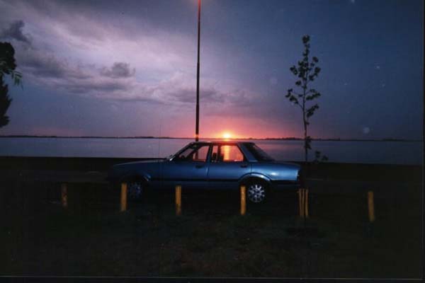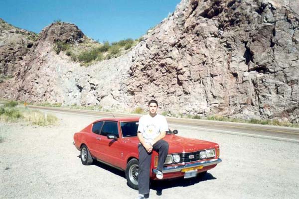 Gabriel desde Mendoza y las fotos de "su Novia", una hermosa GT 1979. De fondo el Prado Aborigen del Parque Gral. San Martín. |