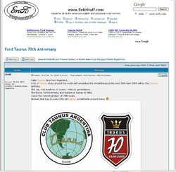 Estos son algunos de los Clubes, sitios de internet y notas gráficas de todo el mundo, donde mencionaron el 70 aniversario del Ford Taunus, un verdadero festejo mundial. |