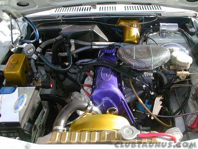 Otra de las cosas que le hizo fué el motor completo, por lo que hoy tiene 70.000 kms. Aprovechando la circunstancia para pintar a fuego y cromó muchas de sus partes, además le instaló un filtro de aire Edelbrock. Le cambió la caja original por una de 5 marchas de Ford Sierra.