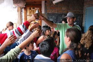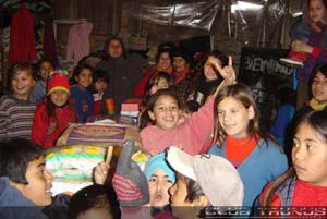 descargar las donaciones, ya nos esperaban una gran cantidad de chicos y madres.