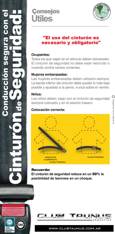 el cinturón de seguridad en las vías urbanas e interurbanas. Su uso es