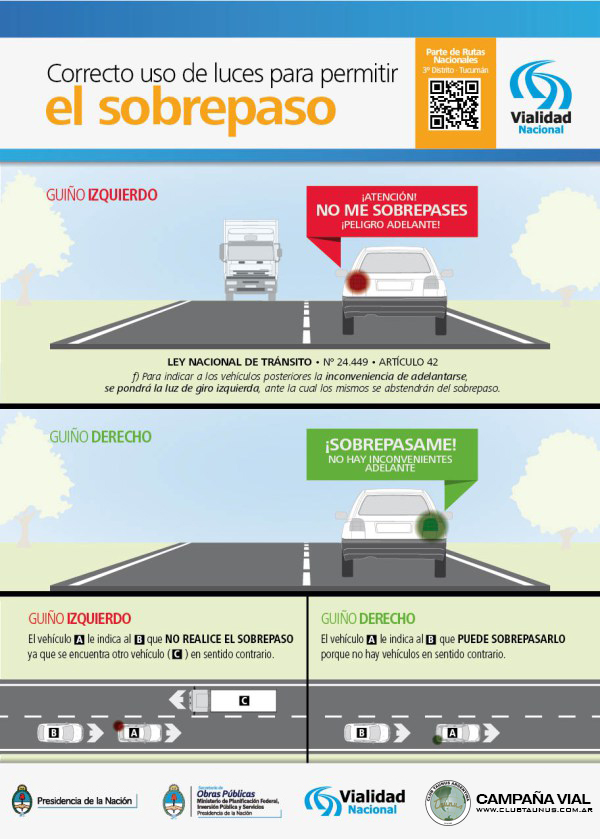 Recuerde circular con las luces bajas o cortas encendidas, a cualquier hora del día, sin importar las condiciones climáticas, según lo establece la ley 12.564.