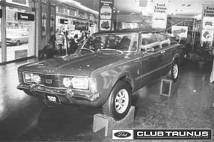 La nueva coupé era algo que faltaba, siendo que todos los fabricantes de vehículos en el país contaban con un seudo deportivo entre sus opciones excepto Ford. Siendo básicamente igual al sedán, sólo se diferenciaba por su figura "dinámica" de 2 puertas con su novedoso techo de forma fastback, emulando a los clásicos Mustang de los ´60 y sus pariente europeos los Ford OSI o los Capri. Baja y ancha, la carrocería del Taunus contaba con buenos argumentos que le aseguraban un futuro exitoso en el país, combinando buena relación peso potencia, robustez y performance.