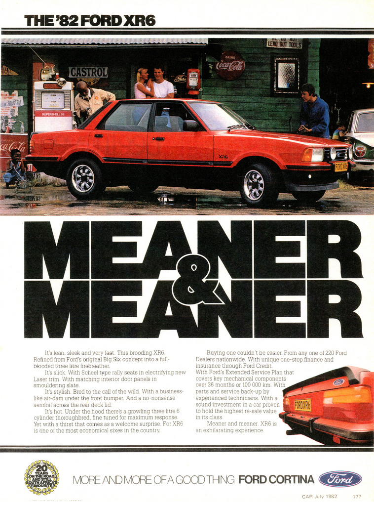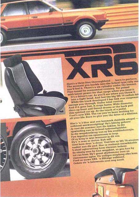 Un pura sangre sudafricano. El Cortina XR6 con motor ingles Essex 3.0L. Su edición limitada del XR6 fue llamado "INTERCEPTOR". Otras versiones del este V6, fueron las "X-OCET" y "TF: Team Ford", que corrieron en circuitos sudafricanos juntos a coches como BMW, Alfa Romeo etc. Fue ganador en varios campeonatos.