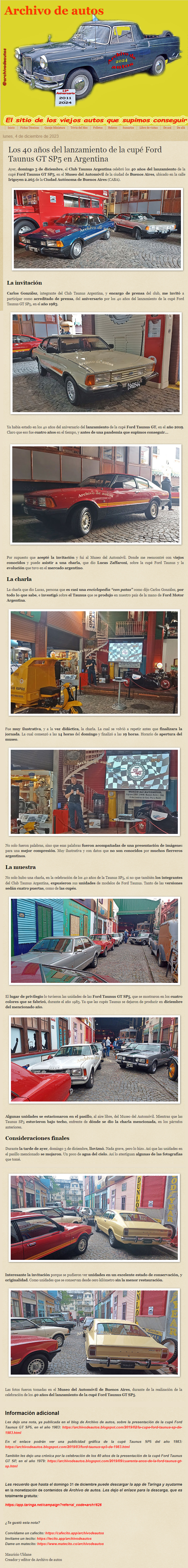 ARCHIVO DE AUTOS - BLOG ESPECIALIZADO - EVENTO 40 ANIVERSARIO TAUNUS GT SP5 - AŅO 2023