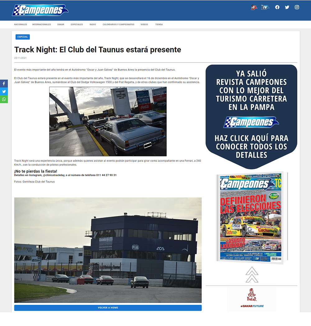 CAMPEONES - TRACK NIGHT - AŅO 2021